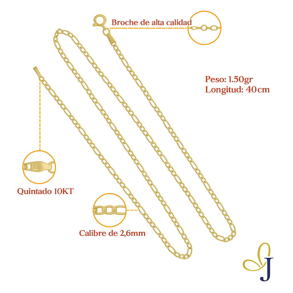 10k Italian Gold Chain, 3x1 Hollow Figaro Style, 40 cm