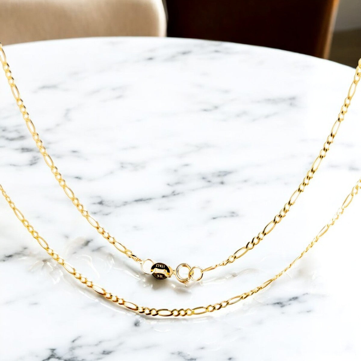 10K Solid Italian Figaro Chain 2mm, 45cm